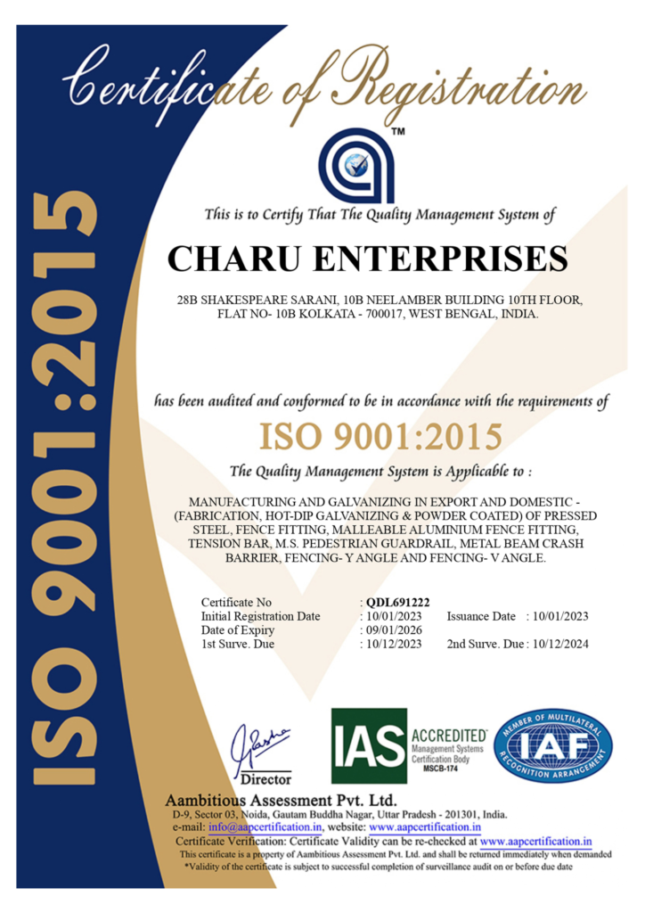 At Charu Enterprises-India, our mission is to deliver high-quality, durable, and innovative fence fittings that meet the diverse needs of our global clientele. We are committed to maintaining excellence in manufacturing, fostering long-term relationships with our customers, and contributing to the advancement of the fencing industry through continuous improvement and innovation.